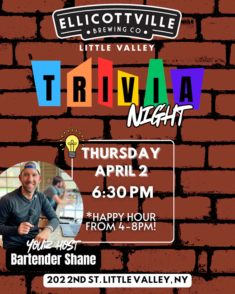 Test your knowledge with a fun-filled evening of trivia on Thursday, April 2nd at 6:30pm, with your host, Bartender Shane!